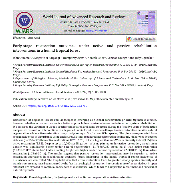 Title: | Early-stage restoration outcomes under active and passive rehabilitation interventions in a humid tropical forest |
